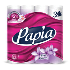 Бумага туалетная бытовая, спайка 32 шт., 3-слойная (32х16,5 м), PAPIA, аромат "Балийский цветок"